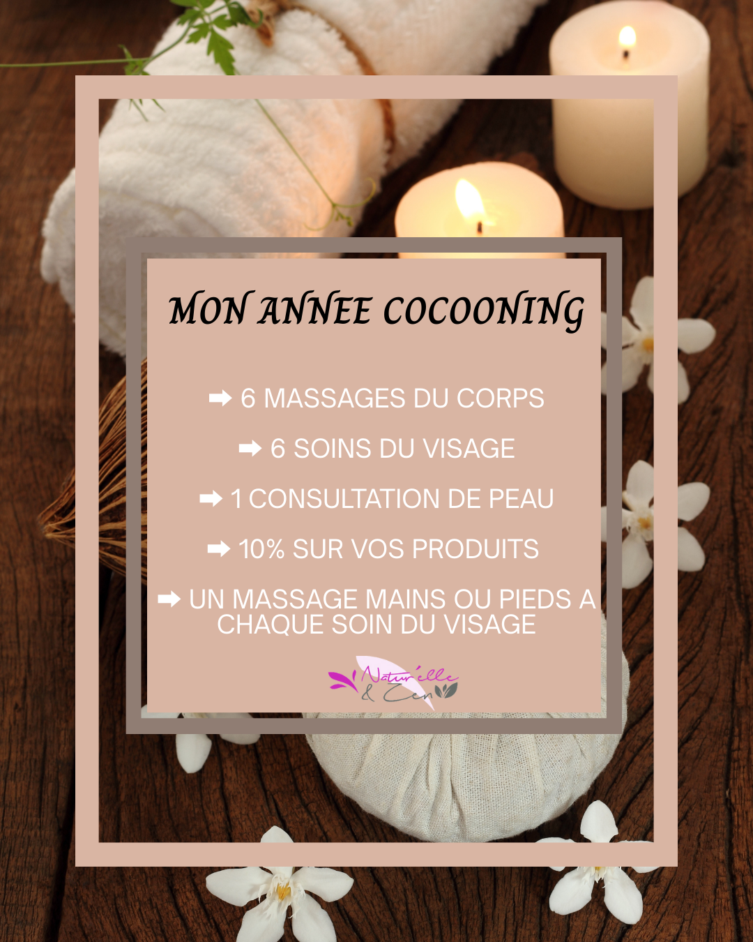 MON ANNEE COCOONING : quoi de mieux que de programmer ses prochains moments de détente pour ne pas s'oublier au cours de l'année !? Un programme de 6 soins du visage et 6 massages à